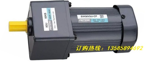 90型小齿轮减速马达功率为40W、60W、90W、120W,可带风扇,调速,电磁刹车。电压可为单相,也可为三相,三相不可调速。减速比为3--500,减速比可根据用户需要另行设计制造。箱体可分为:GN型、GU型。GN型时,轴为12。GU型时,轴为15。