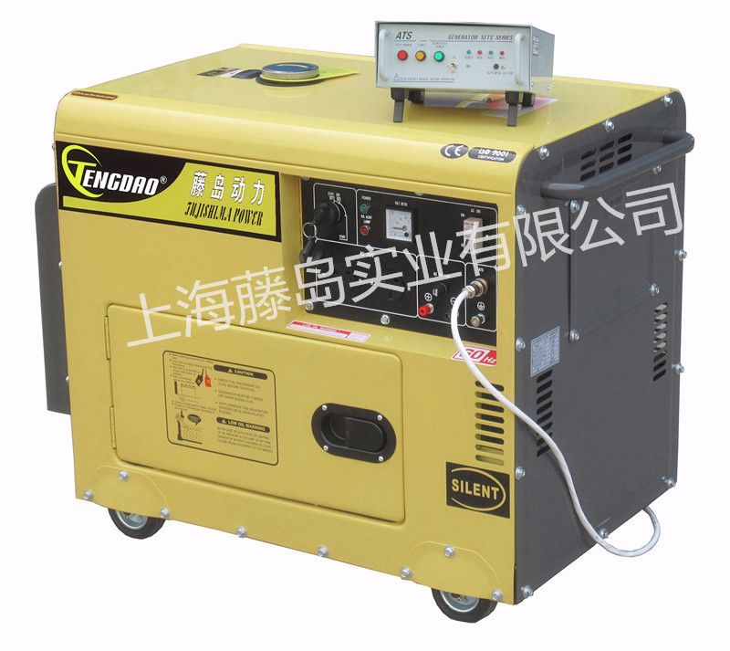 上海藤岛5000w家用柴油发电机220V为使发电机运行不致过热,其中线电流不得超过发电机额定电流底的50%。中线电力过大,在中线上应加装中线电抗器加以限制。发动机选用藤岛 TENGDAO原装工业发动机。采用完全电子喷油控制技术,高性能指标、高可靠性。具有体积小、耗油少、启动性能优良、精度高、寿命长、点烟稳定、运行可靠、低排放、低噪音,维护方便等优点,具有良好的经济性,和很好的高原适应能力,并广泛应用于大小汽车、重型卡车、工程机械、轮船、坦克等民用动力领域,它更是发电机组的理想动力。作为通信用柴油发电机组,必须达到GB2820-1997中G3级或G4级规定的要求,同时和《通信用柴油发电机组的进网质量认证检测实施细则》规定的24项性能指标要求,同时要通过我国行业主管部门所设立的通信电源设备质量监督检验中心的严格检验。柴油发电机组是一种小型发电设备,系指以柴油等为燃料,以柴油机为原动机带动发电机发电的动力机械。整套机组一般由柴油机、发电机、控制箱、燃油箱、起动和控制用蓄电瓶、保护装置、应急柜等部件组成。整体可以固定在基础上,定位使用,亦可装在拖车上,供移动使用。 柴油发电机组属非连续运行发电设备,若连续运行超过12h,其输出功率将低于额定功率约90%。 尽管柴油发电机组的功率较低,但由于其体积小、灵活、轻便、配套齐全,便于操作和维护,所以广泛应用于矿山、铁路、野外工地、道路交通维护、以及工厂、企业、医院等部门,作为备用电源或临时电源。