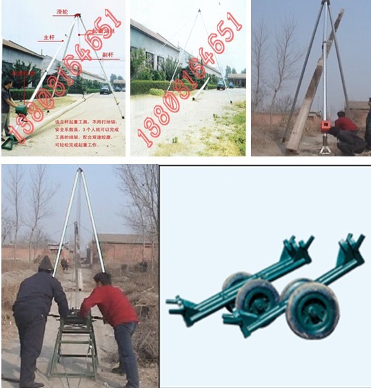 三角架立杆机又叫(铝合金立杆机,铝合金立杆器,三脚架立杆器,电线杆立杆机水泥杆立杆机)