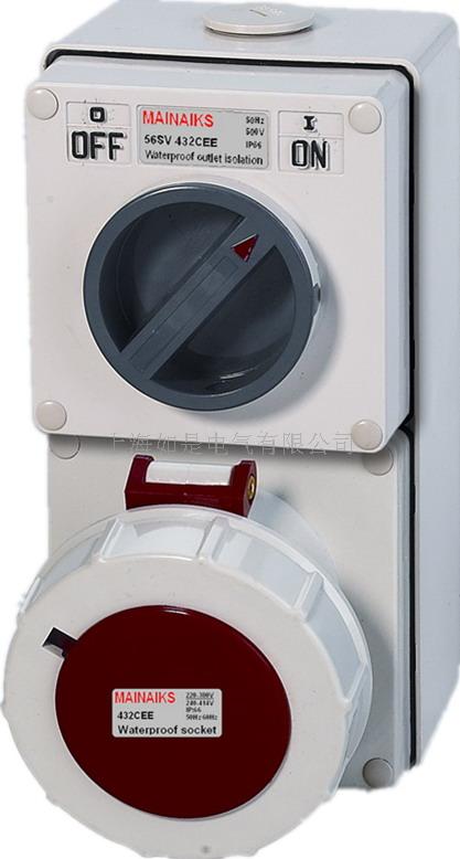 MAINAIKS品牌56SV防水组合开关插座,是由一组或几组56SW防水隔离开关与CEE系列防水插座加一个底座组合而成,配搭结构协调合理,体积小、密封性能好。适用于任何恶劣的户外工作环境,能满足任何户外气候条件下、不同的安全用电需求,并可根据用户需求任意组合。