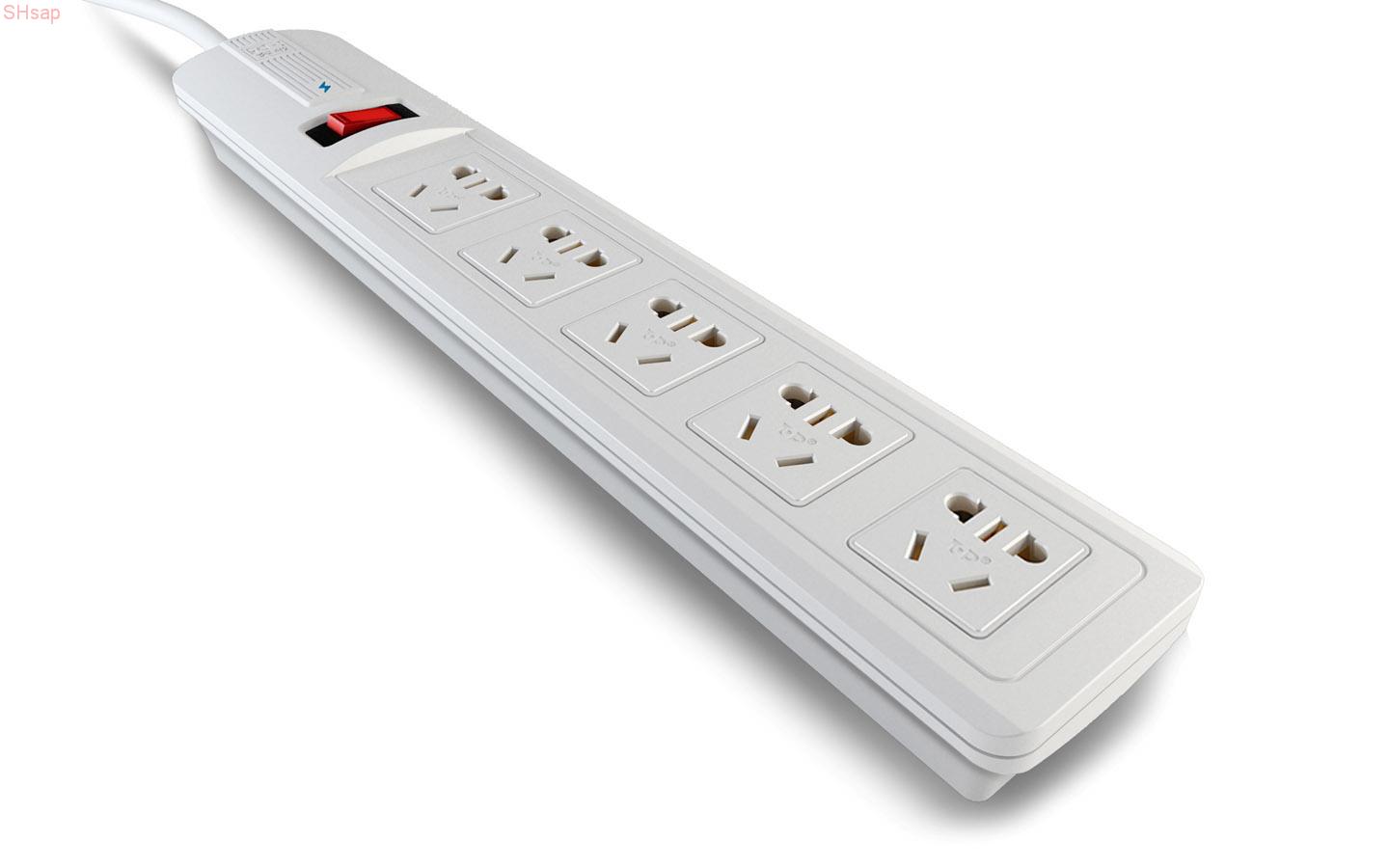 供应TZ-C1093一控五插座 10KA防雷(L-G,N-G),过载,开关、劣化指示,5位带保护门两扁圆加三扁组合孔、全长3米(ф7mm,0.75mm2),双泡壳热合包装