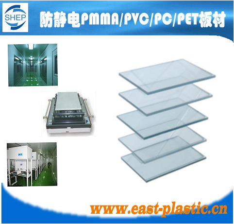 具有优秀的防静电性能,表面电阻为10E6-10E8,表面硬度3-5H,应用与防静电的工艺装备,无尘净化空间分隔,测试治具等。