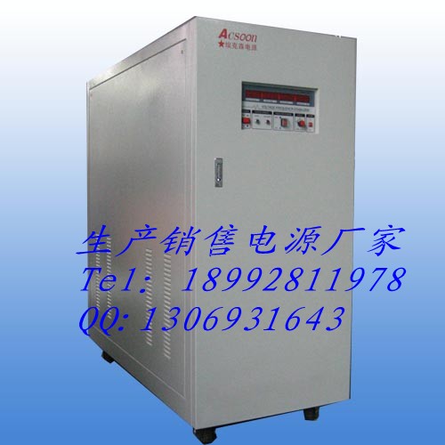 北京逆变式稳压稳频电源简单说明:http://www.acsoonpower.com) 是将市电通过功率变换电路转变为所需要的电压和频率的一种精密电源. 由于世界各国电网指标不统一,生产出口产品都需要模拟不同国家的电网状况 , 测试各种出口电器产品 。过去采用发电机进行二次变频,但耗电量大,噪音大,稳定性差.稳频稳压电源能提供世界各国标准电网电压及频率。输出电压、频率无级数字可调,适用于对出口电器产品进行电压,频率的老化测试。稳频稳压电源也可以作为进口60HZ设备的供电电源.