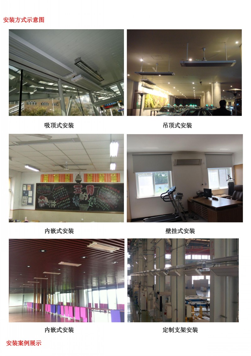 电热红外辐射采暖器,是通过高温远红外辐射的方式直接加热人体和空气,升温迅速且加热效果有保障,甚至有一些个别高温瑜珈房有3米多的高度,这种环境下的传统对流加热原理就更加难以实现38度以上的要求了,传统方式(踢脚线、半包或全包、地暖等)是通过先加热空气,等整个房间的空气加热后再把热量传导给人体,而悬挂于天花板的辐射取暖设备所发出的红外辐射热量是可以均匀的直接加热人体,再通过人体或地面等二次辐射加热空气,因此这种加热的效果是有保障的。