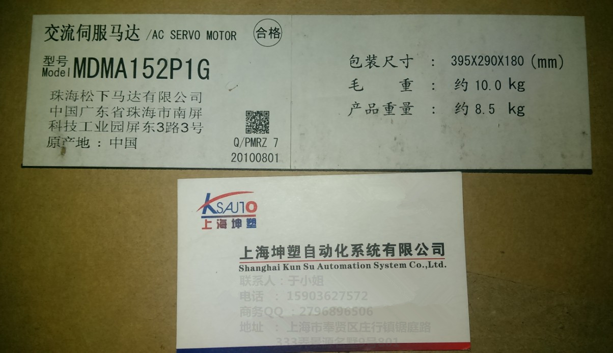 大惯量:MHMA152P1G 带刹车:MHMA152P1H
