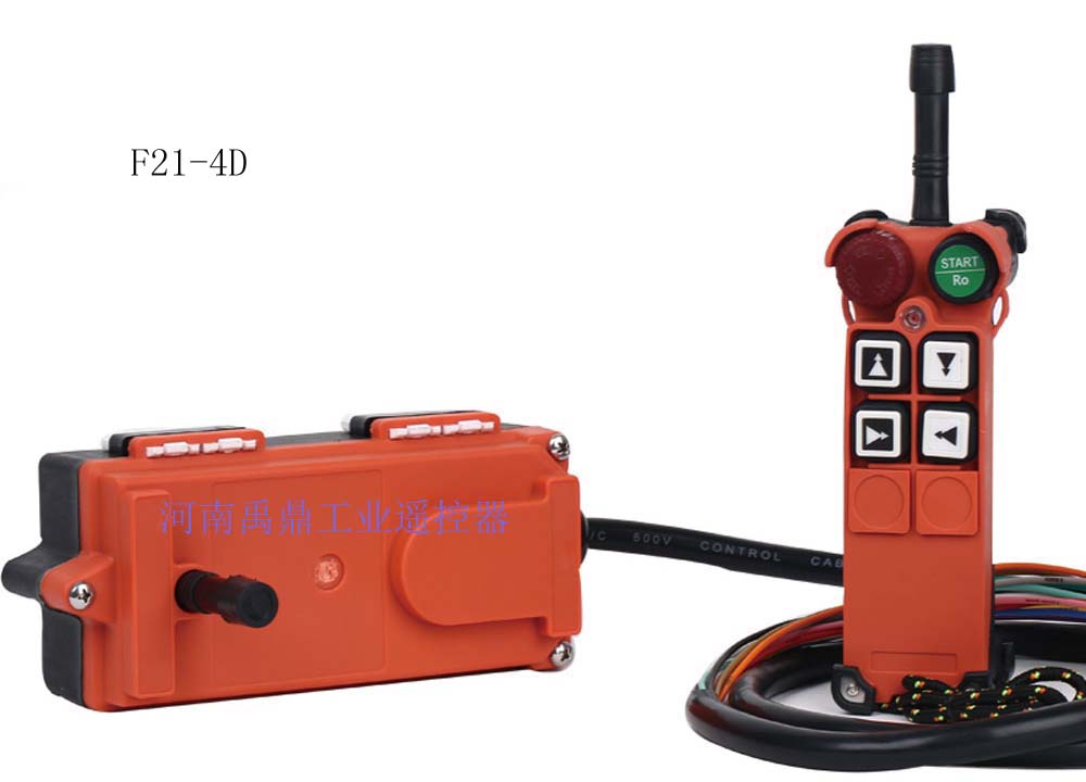F21-4S/D为河南禹鼎电子股份有限公司生产,包含有单双速,单速F21-4S,含一个启动键,一个急停键,4个单速方向键。F21-4D,一个启动,一个急停,4个双速方向键。F21-4S/D通常适用与工业或者其他行业控制四路方向的机械。