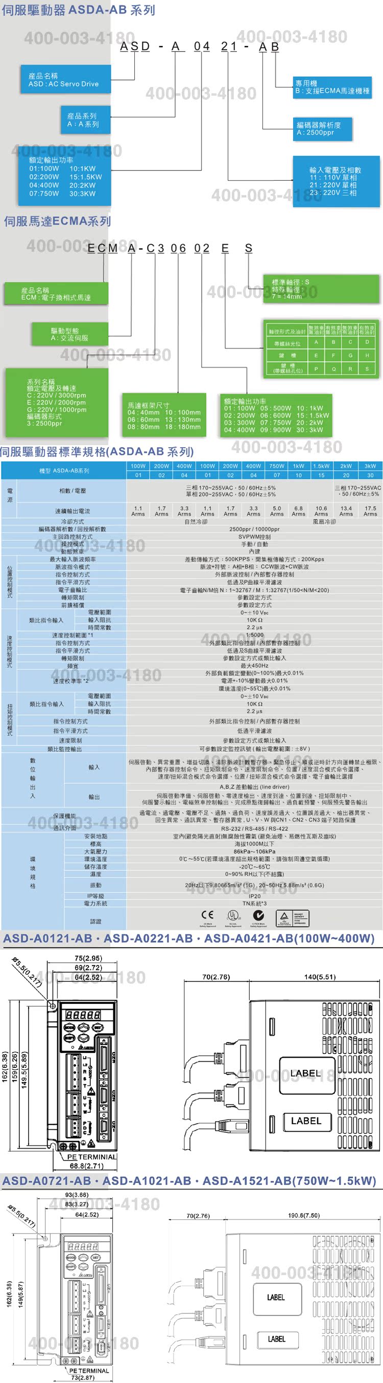 本系列支持低、中、高三种惯量的伺服马达,可解决客户在不同扭力应用上的需求。支持标准Modbus通讯读写,可与台达PLC, HMI构成通讯控制架构。本系列可适用于各种机械加工行业或产业机械.询价热线:021-61316707 13918864473 QQ:937926739