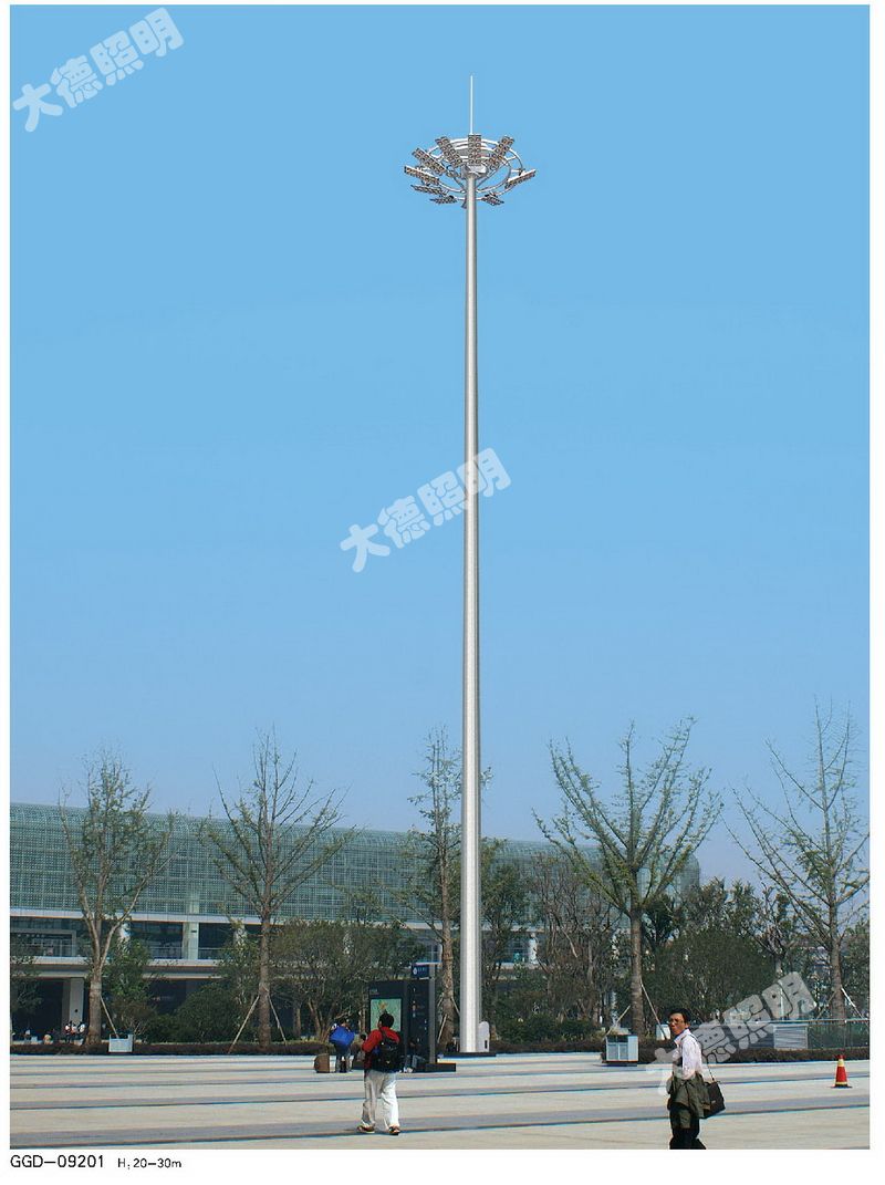 高杆灯:一般指15米以上钢制柱型灯杆和大功率组合式灯架构成的新型照明装置。它由灯头、内部灯具电气、杆体及基础部分组成。灯头造型可根据用户要求、周围环境、照明需要具体而定;内部灯具多由泛光灯和投光灯组成,光源采用NG400高压钠灯,照明半径达60米。杆体一般为圆柱型独体结构,用钢板卷制而成,高度为25—40米指25米以上钢制柱型灯杆和大功率组合式灯架构成的新型照明装置。它由灯头、内部灯具电气、杆体及基础部分组成。灯头造型可根据用户要求、周围环境、照明需要具体而定;内部灯具多由泛光灯和投光灯组成,光源一般采用高压钠灯和金卤灯。,照明半径达60米。杆体一般为圆柱型独体结构,用钢板卷制而成,高度为15—40米。