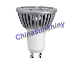 铝质散热器及反射器; PBT白色环保材料灯口座;单颗大功率LED光源;AC85V-AC265V宽电压恒流源。