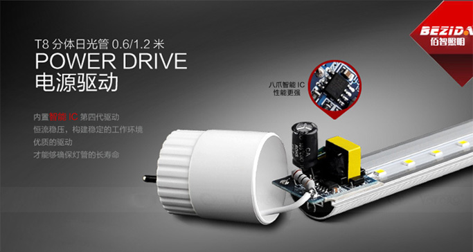 T8分体灯管、LED节能灯管T8可直接替代传统灯管使用,无需更换支架。