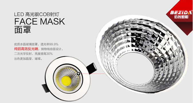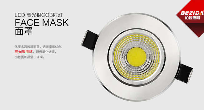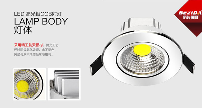 LED臻品射灯 COB光源 高端大气 性能稳定、航空车铝对流散热方案 有效提升使用寿命。