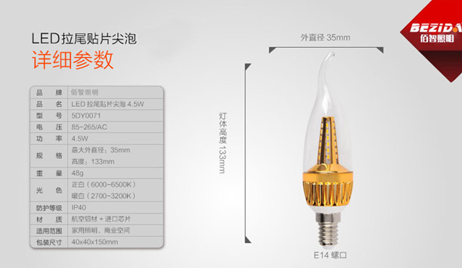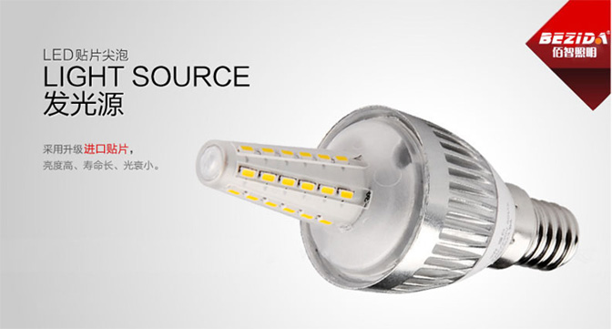 LED拉尾蜡烛灯 尖泡灯 水晶灯光源 塔形360度照射