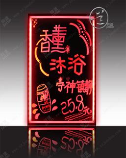 3、荧光效果:本产品通过板体透光再利用专用荧光笔产生光学发应即可让字体发出绚丽的光彩,特别吸引消费者,从而达到促销的目的。