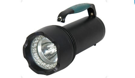 为满足油田、钢铁、铁路、电业、公安、消防、监狱等石化部门对移动防爆照明灯具的需要,研制开发生产5800型多功能大容量HID+LED手提式防爆探照灯,,