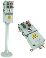 6、防爆按钮(引进德国技术)采用超声波封装工艺,保证了可靠地结合强度及防爆性能,按钮采用模块式,按钮的功能可以两单元自由结合。按钮头有自复位蘑菇型、选择档位式,带钥匙停等多种方式。