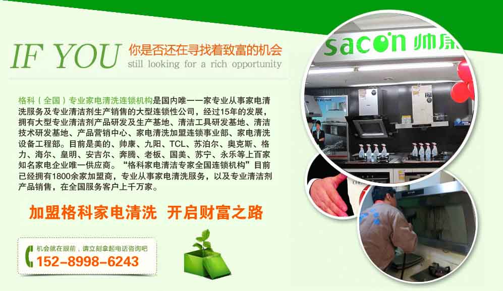 4、简单、易操作的产品特性;注定格科家电清洗产品运行全新的营销模式;相关市场策划,帮助代理商迅速占领终端市场、赢得客户;