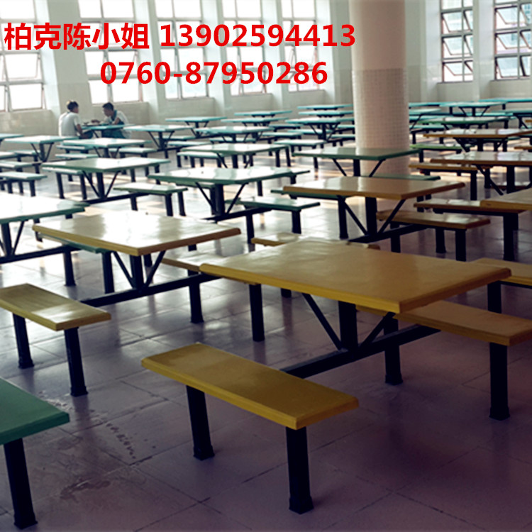 中山市学校食堂餐桌椅厂家 4人位玻璃钢餐桌椅 不锈方钢餐桌