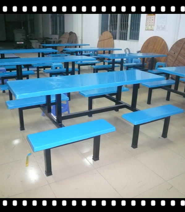 餐桌椅主要有以下类型:二人玻璃钢餐桌椅、四人食堂餐桌椅、六人快餐桌椅、八人餐桌椅、十人餐台椅;玻璃钢靠背椅、玻璃钢条凳餐桌椅、玻璃钢圆凳餐台椅;连体餐桌椅、分体餐台椅、分段条凳餐桌椅;圆桌餐台椅、方桌椅餐桌椅;玻璃钢餐桌椅、曲木椅餐桌椅、防火板餐桌椅。玻璃钢餐桌椅台面及椅、凳面为玻璃钢材质,颜色可选择。铁架一般为50*50*1.0厘厚方管制造,喷漆色漆。方便灵活的食堂餐桌椅.
