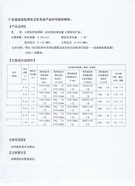 2.饮用水水质净化设备的产品标签上应标注产品名称、产品卫生许可批准文号、生产企业信息、产品执行标准号、生产日期或生产批号(净水器批件批号)等内容,购买时要注意查看。