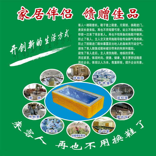 步步洁自动鞋套机是日渐流行的一种清洁、环保、时尚的新型产品。无须用电,安全便捷,穿鞋的脚只要往里轻轻一踏,就会自动在鞋上套一只鞋套,彻底解决了客人来访须脱换拖鞋的麻烦。