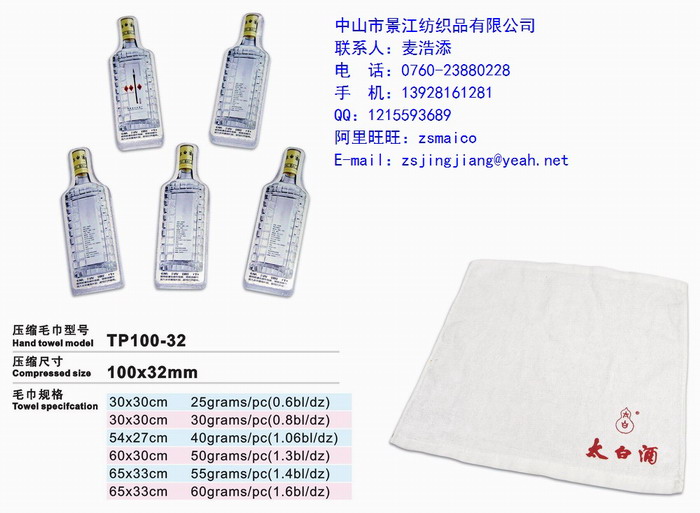 高级环保压缩毛巾是二十一世纪的高科技成果、采用100%纯棉经高温压处理而成的新一代产品。放入水中浸片刻即可张开使用。本产品新奇独特,干净卫生,产品企业形象宣传极具效力。广泛用于广告宣传界、酒店、旅游公司等。