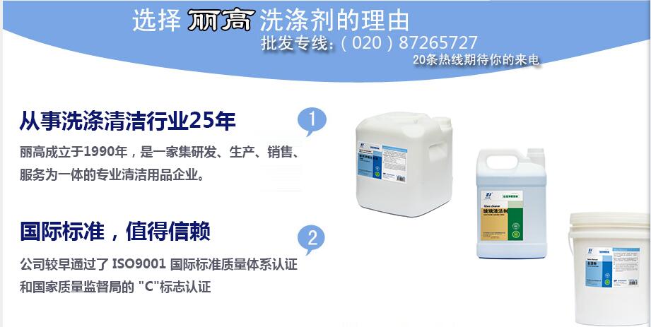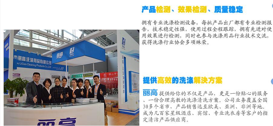 丽高专业生产和销售 “洗衣房洗涤用品”、“客房洗涤用品”、“厨房洗涤用品”、“地毯护理用品”、“地板清洁用品”、“工业清洗用品”以及“日用化工用品”等系列产品。经过多年的努力,研制开发了一系列具有自主知识产权的品牌产品,如“仙桥”,“科洁尔”,“威克特”等品牌。公司较早通过了 ISO9001 国际标准质量体系认证和国家质量监督局的 "C"标志认证。凭借先进的大型生产设备和精干专业的员工团队,公司产品遍布广州、上海、南昌、厦门等全国各省(区)、直辖市,并远销到香港、新加坡、泰国等国家和地区,在同行业赢得了良好口碑。
