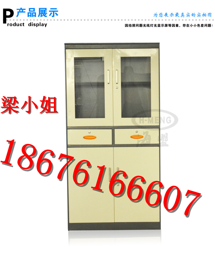 海盟文件柜铁皮柜 带锁抽屉玻璃办公档案资料柜 钢制储物