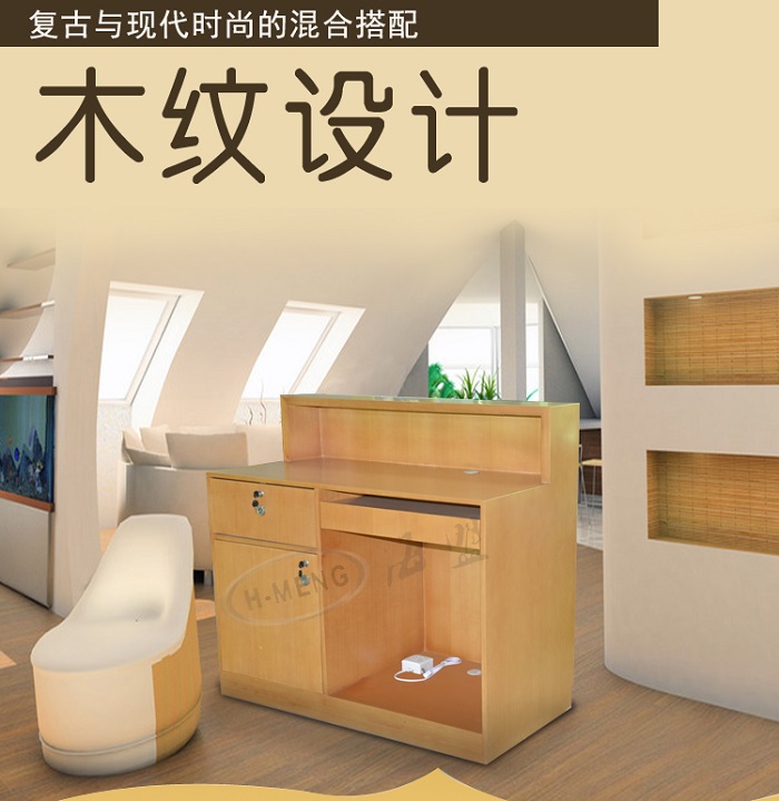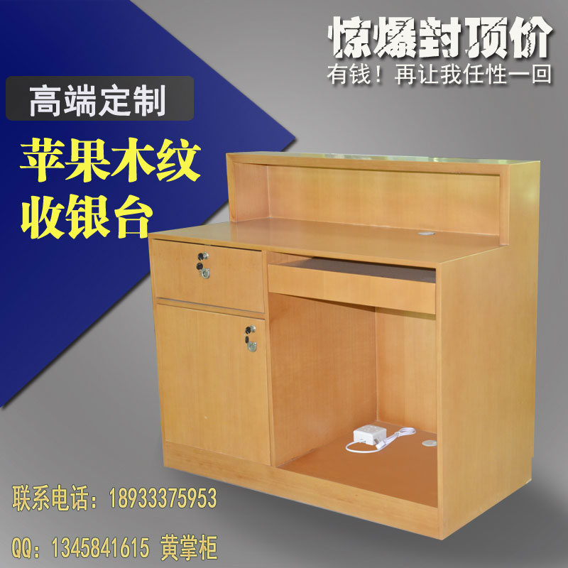 名称:木纹苹果收银台 品牌:海盟展示 材质:纤维板贴实木皮