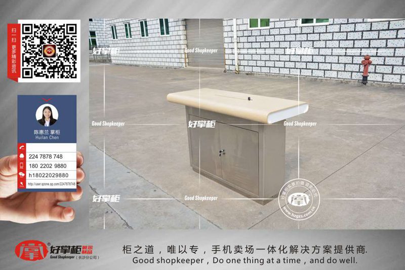 好掌柜手机柜台厂家制作各种精美的手机展柜、手机体验桌、手机配件柜、手机转角柜、收银台、维修台、业务受理台、托架