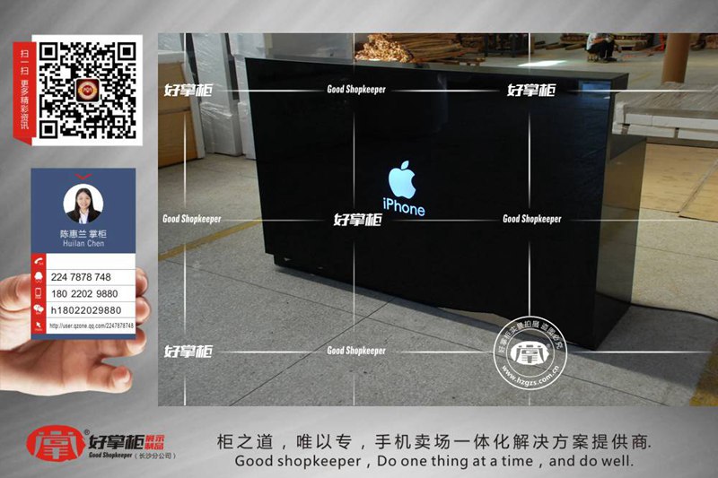 好掌柜手机柜台厂家制作各种精美的手机展柜、手机体验桌、手机配件柜、手机转角柜、收银台、维修台、业务受理台、托架