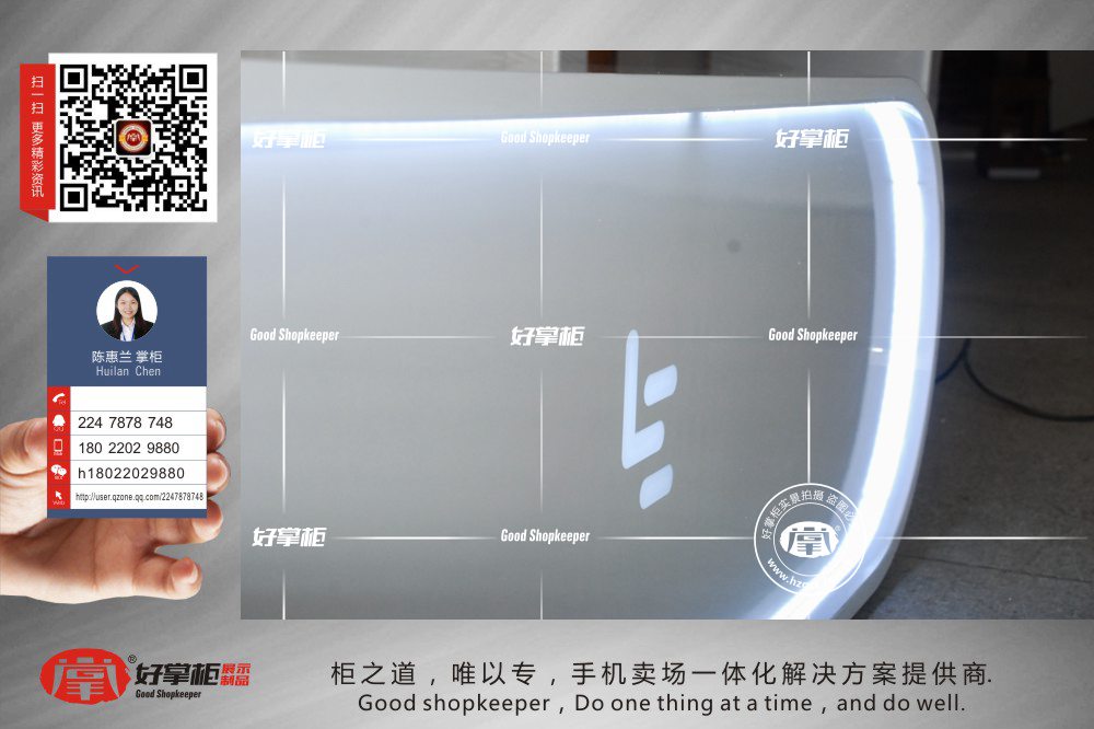 好掌柜手机柜台厂家制作各种精美的手机展柜、手机体验桌、手机配件柜、手机转角柜、收银台、维修台、业务受理台、托架