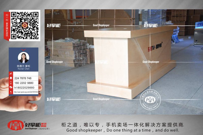 好掌柜手机柜台厂家制作各种精美的手机展柜、手机体验桌、手机配件柜、手机转角柜、收银台、维修台、业务受理台、托架