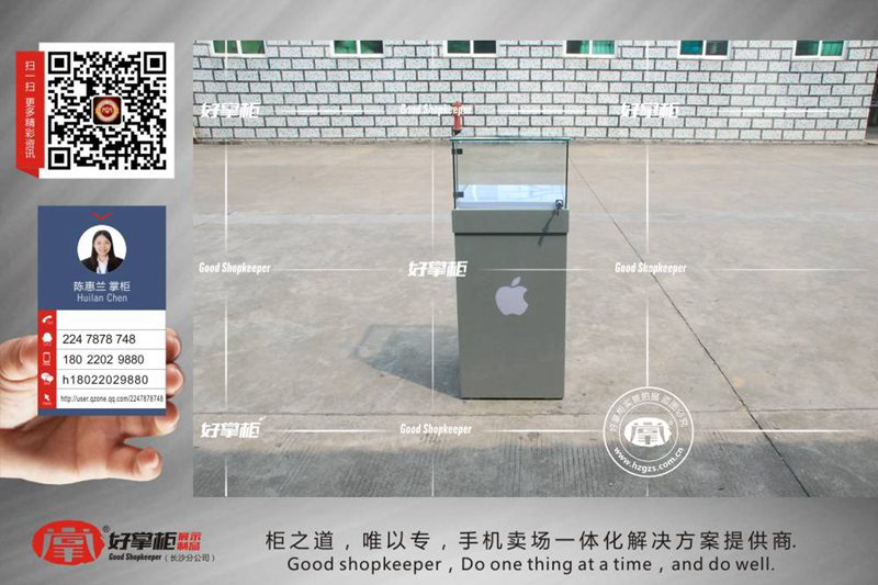 好掌柜手机柜台厂家制作各种精美的手机展柜、手机体验桌、手机配件柜、手机转角柜、收银台、维修台、业务受理台、托架