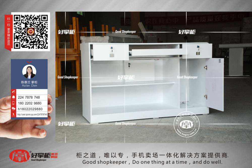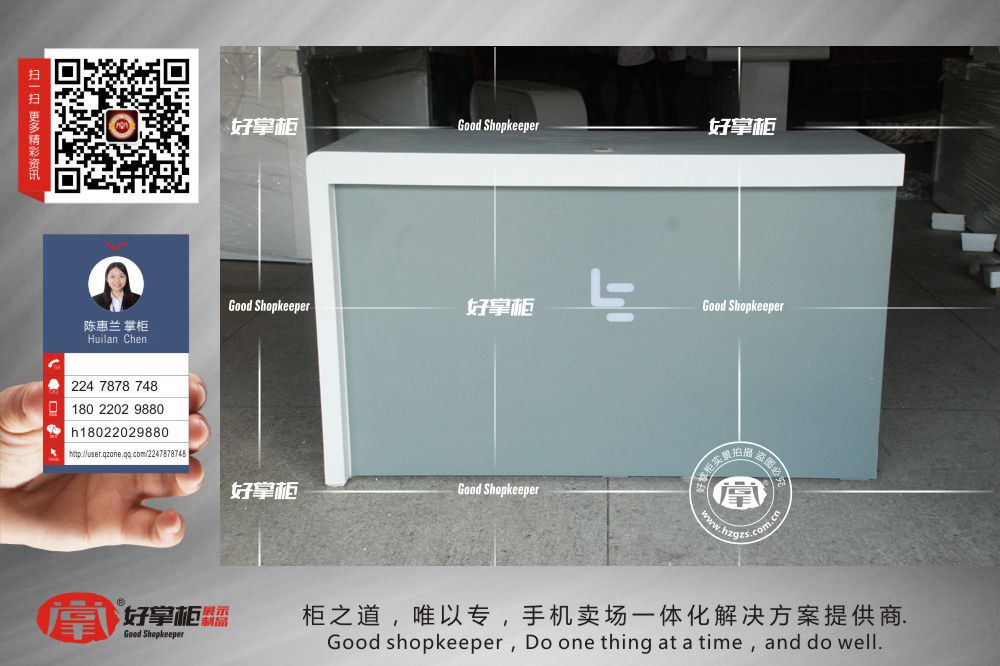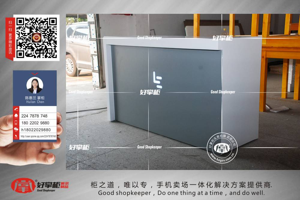 好掌柜手机柜台厂家制作各种精美的手机展柜、手机体验桌、手机配件柜、手机转角柜、收银台、维修台、业务受理台、托架