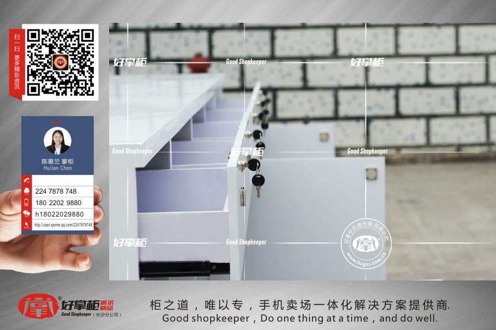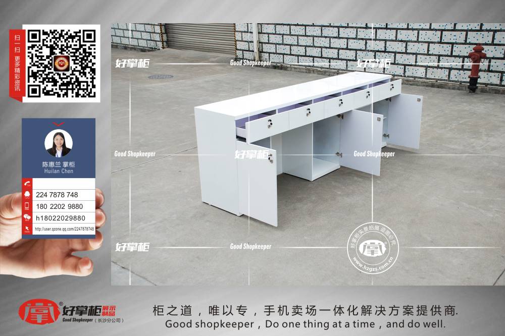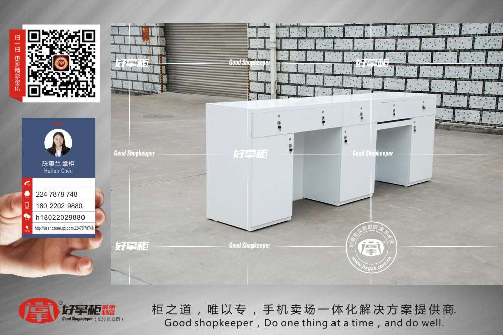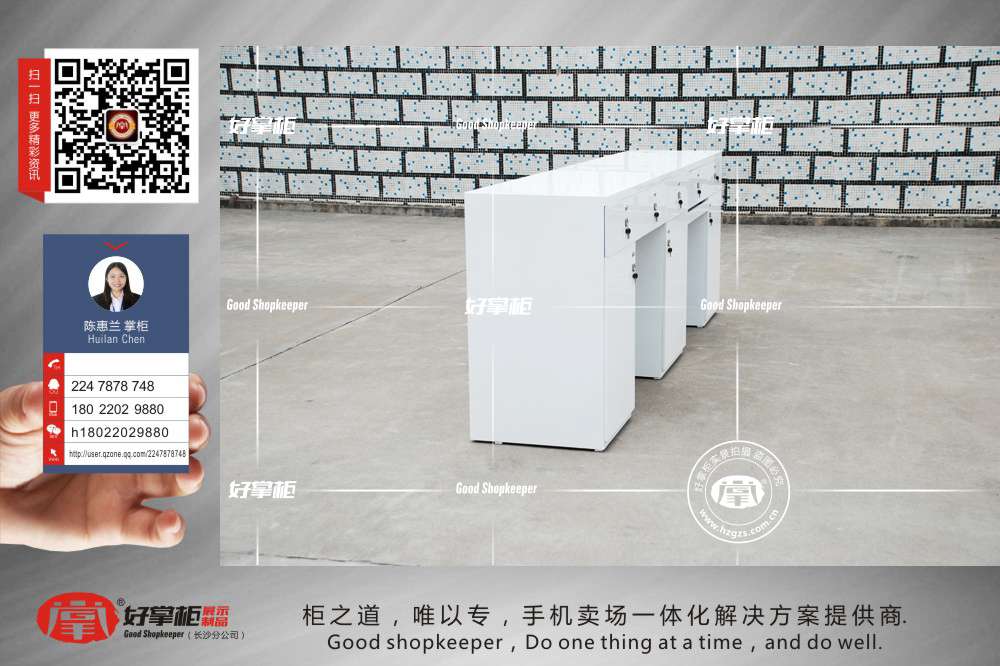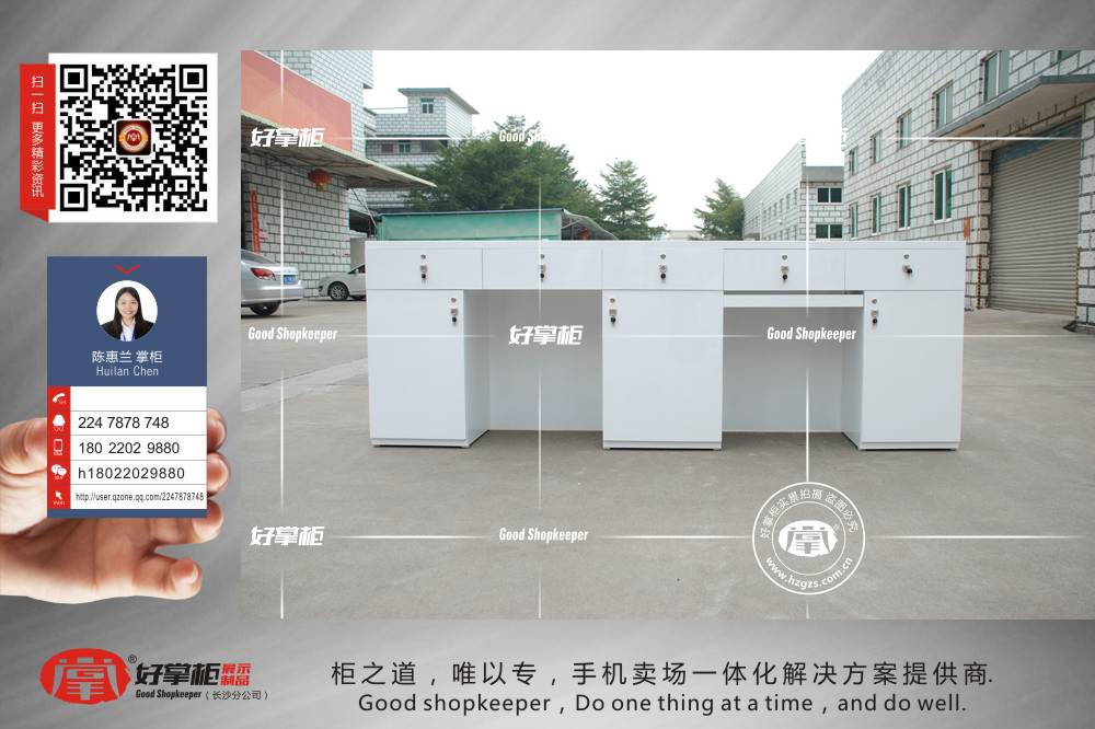 好掌柜手机柜台厂家制作各种精美的手机展柜、手机体验桌、手机配件柜、手机转角柜、收银台、维修台、业务受理台、托架