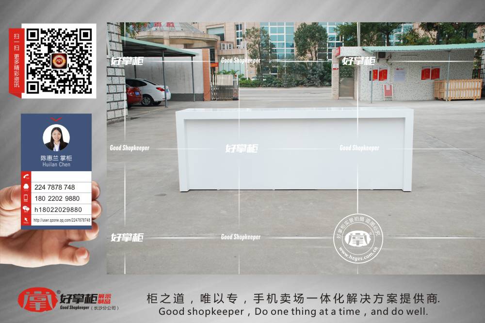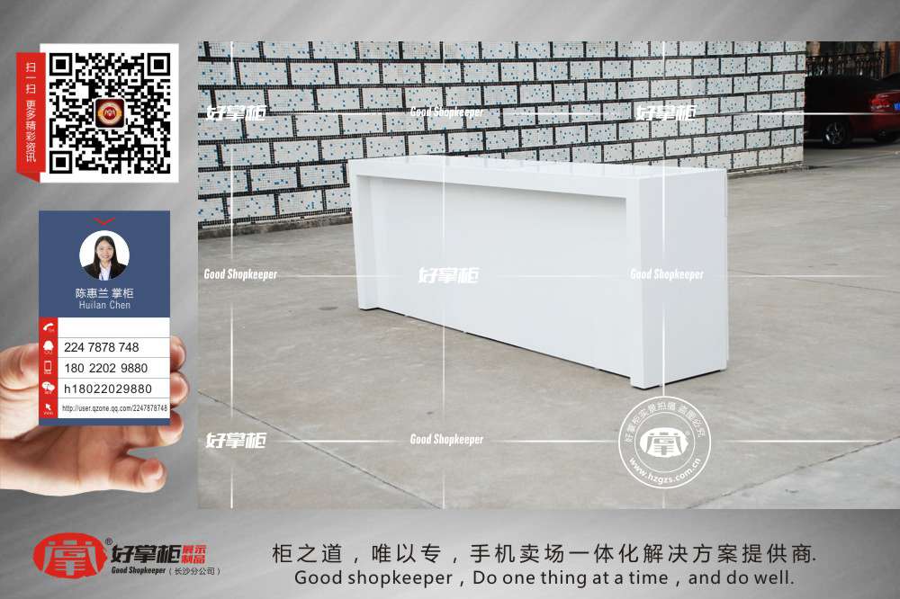 精简白色手机柜台_长款收银台_木质展示柜台图片