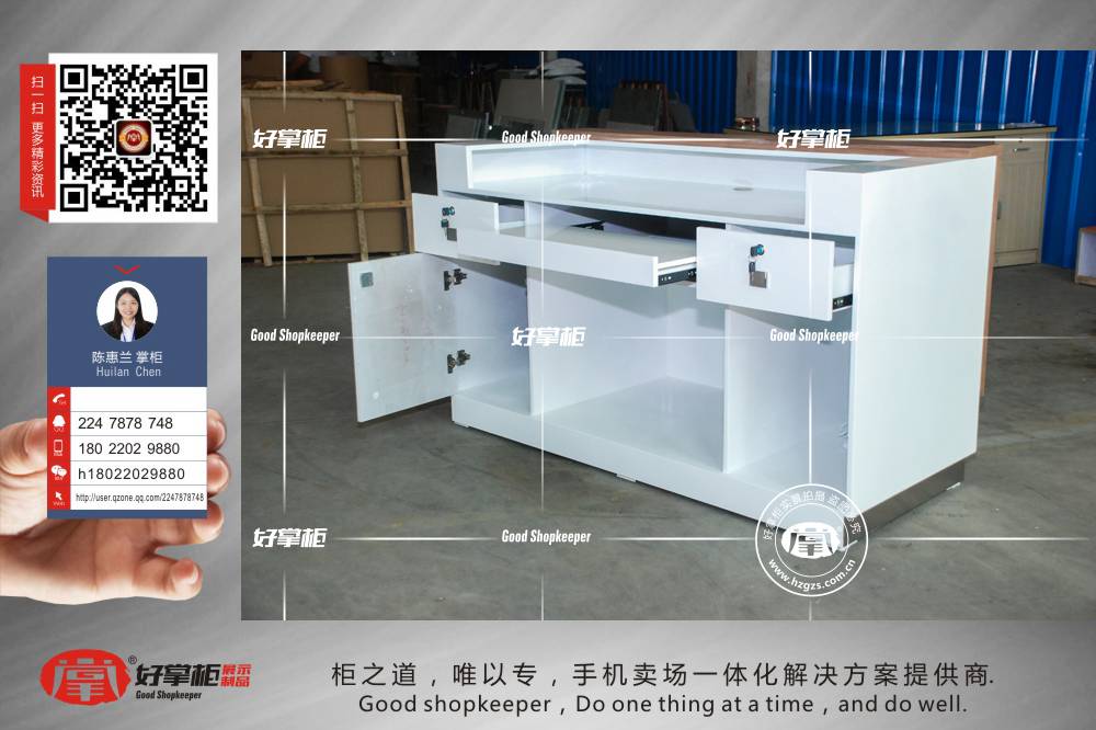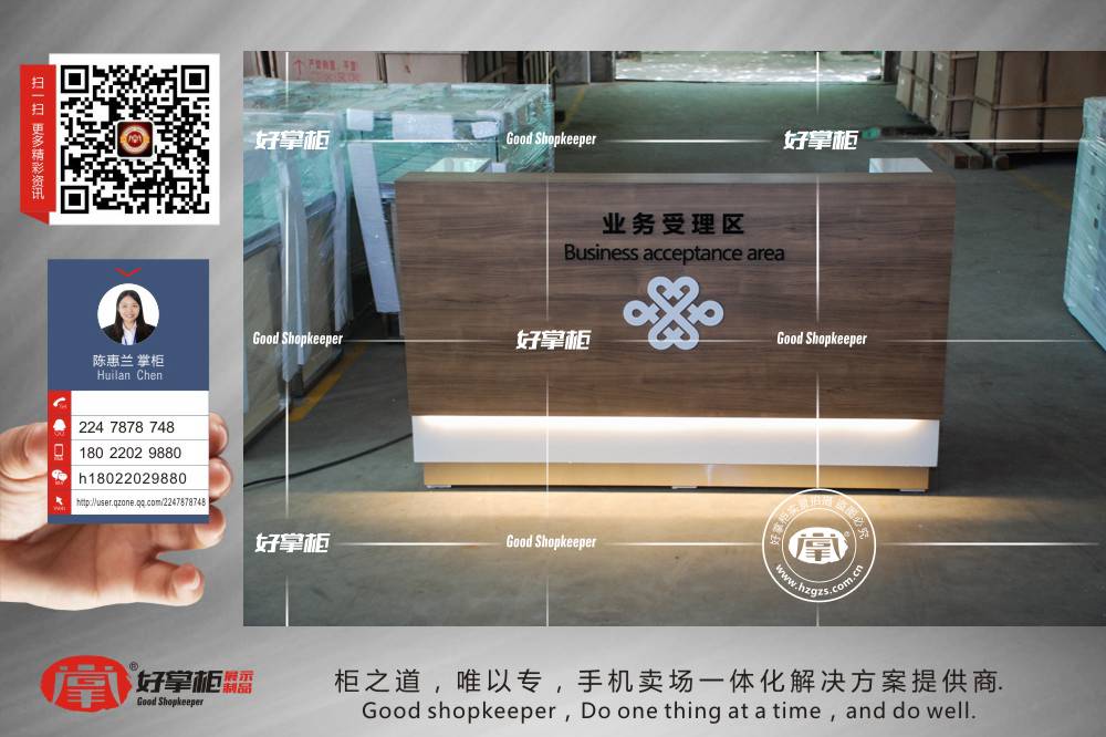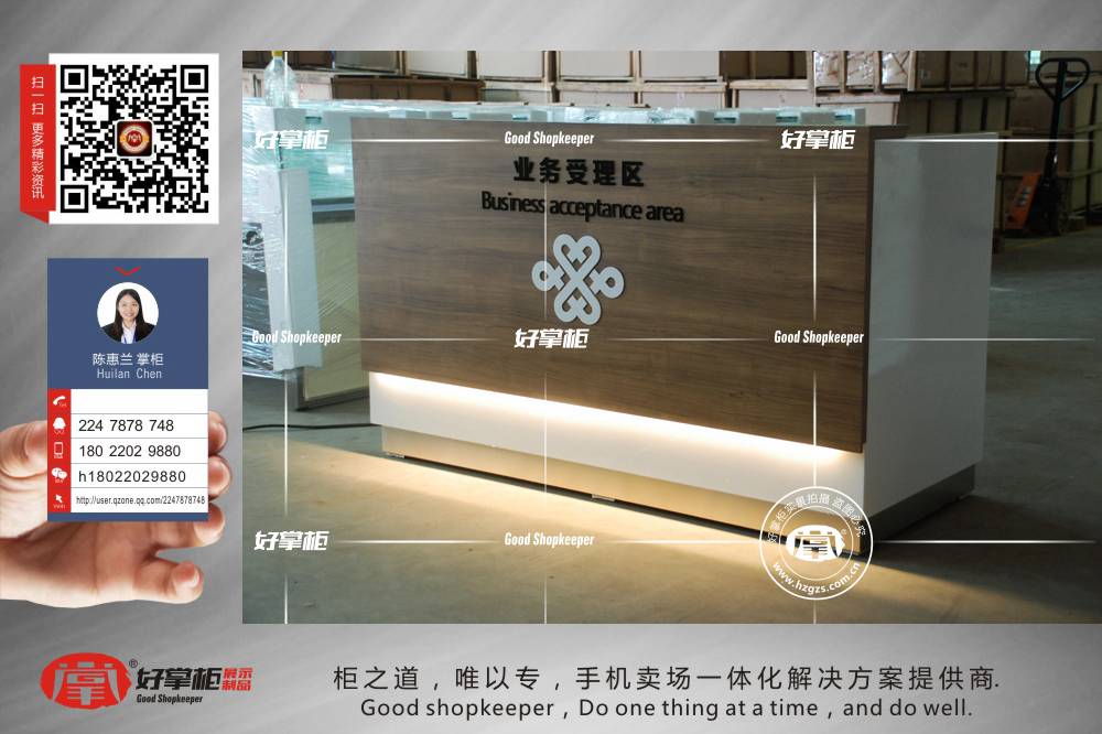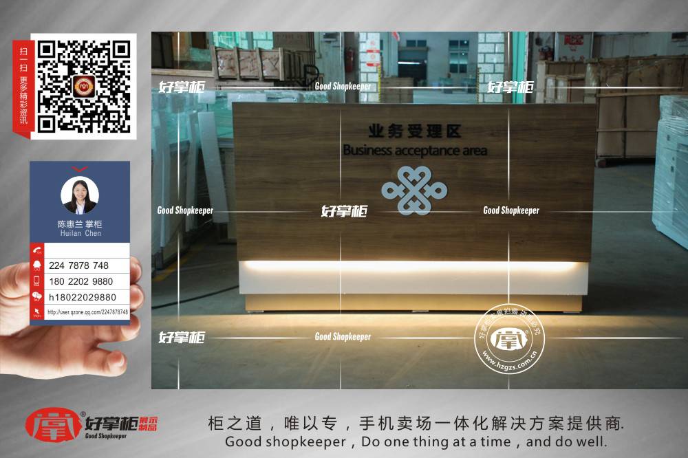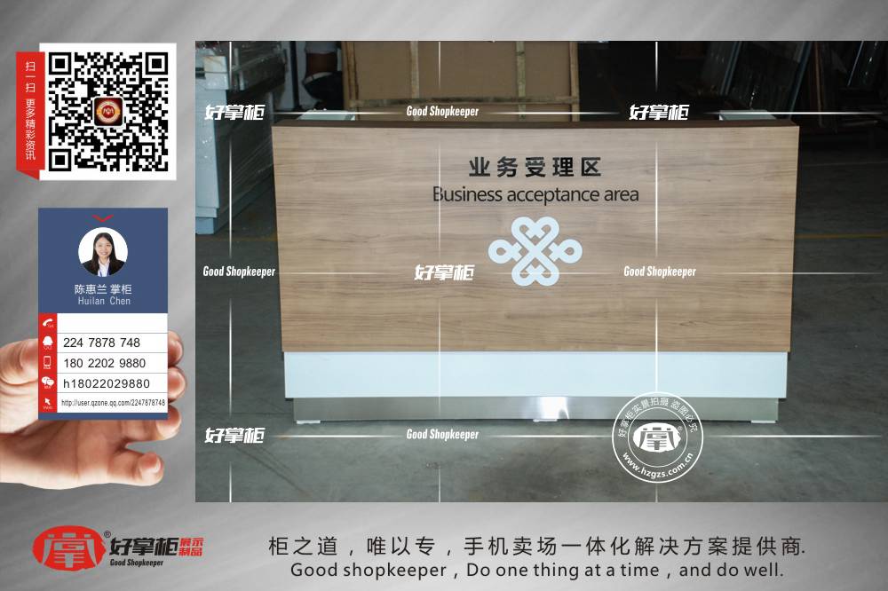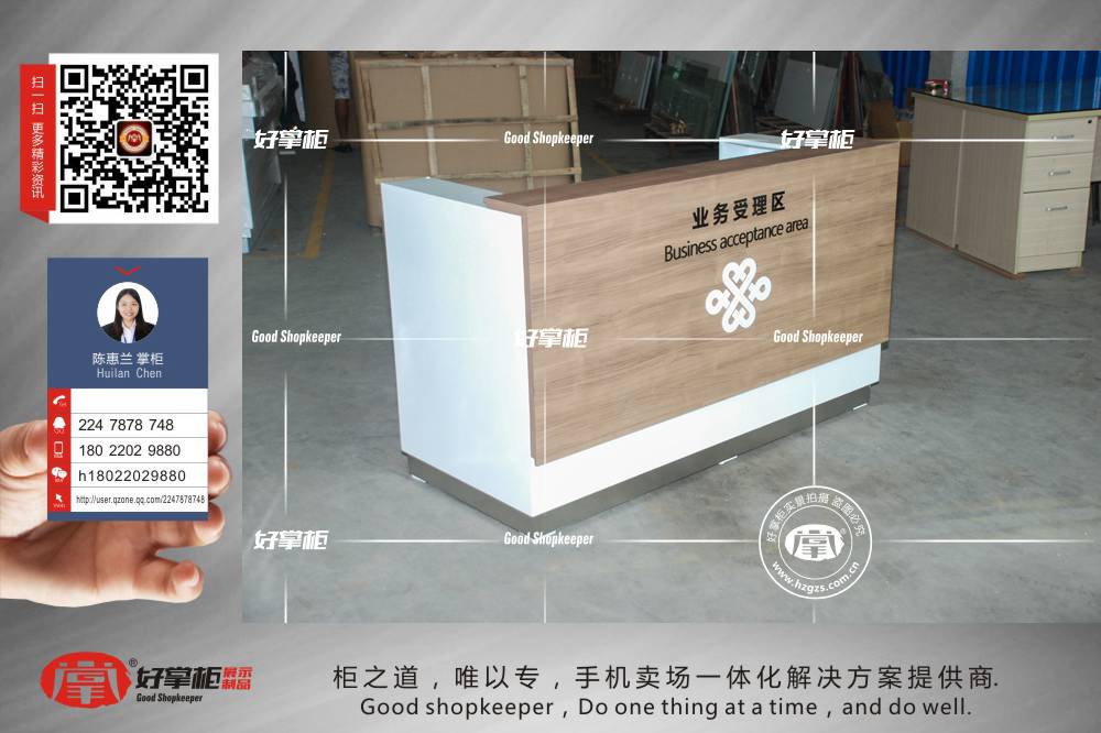 最新款木质木纹业务受理台_好掌柜手机柜台_展示柜台设计