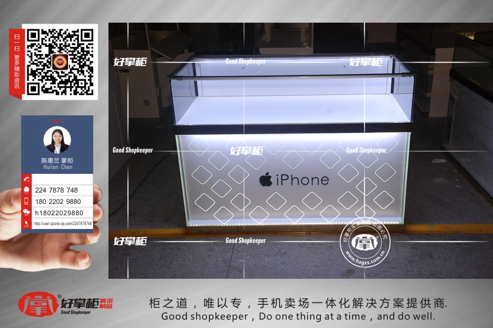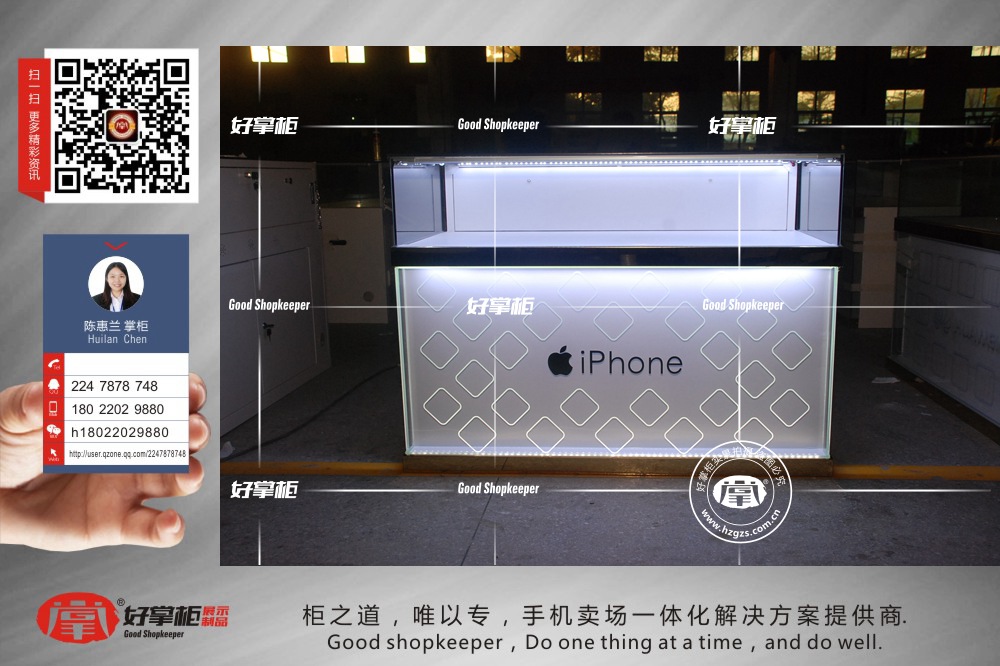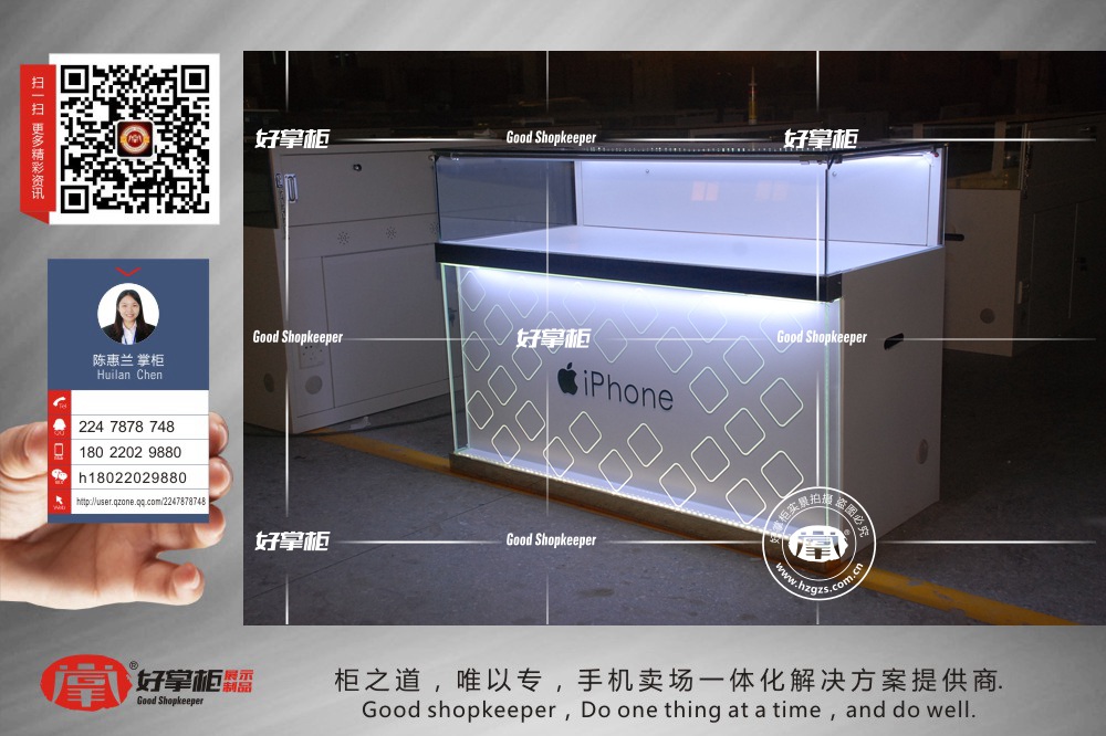 2016年9月9日,苹果iPhone7终于问世了,全面疯抢,但是这么多卖场,怎么样让客户选择自己的卖场体验,咨询,最终下单呢,手机卖场的设计就尤为重要了,苹果7手机展示柜台,专业手机展示柜台,广东好掌柜展示制品有限公司提供手机卖场一站式建店设计,建设,咨询热线:180-2202-9880好掌柜小兰掌柜。