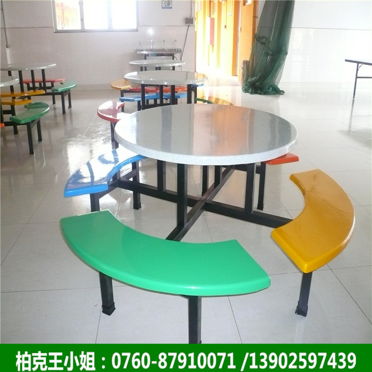 食堂餐桌椅多少钱一张?哪里的比较便宜?顺德玻璃钢连体餐桌椅