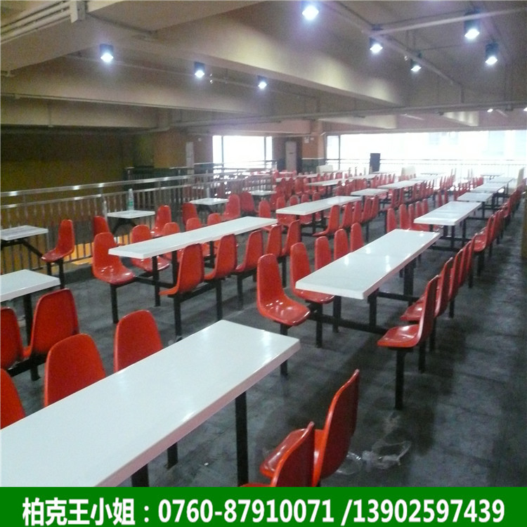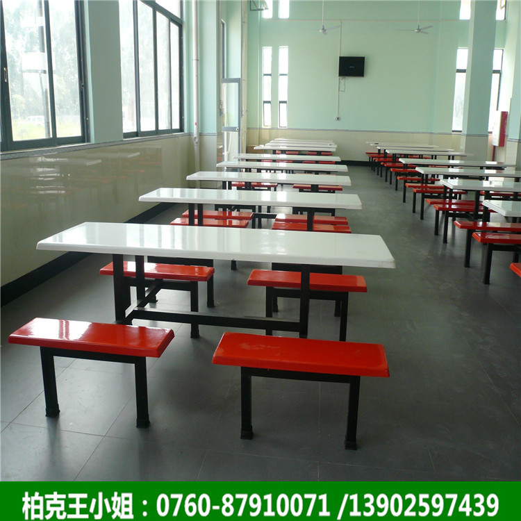 海南玻璃钢连体餐桌椅热销 学校食堂餐桌椅 8人组合餐桌