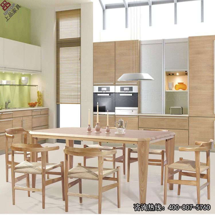 天津【餐厅家具】上品家具厂家为您定做实木+塑料餐厅桌椅