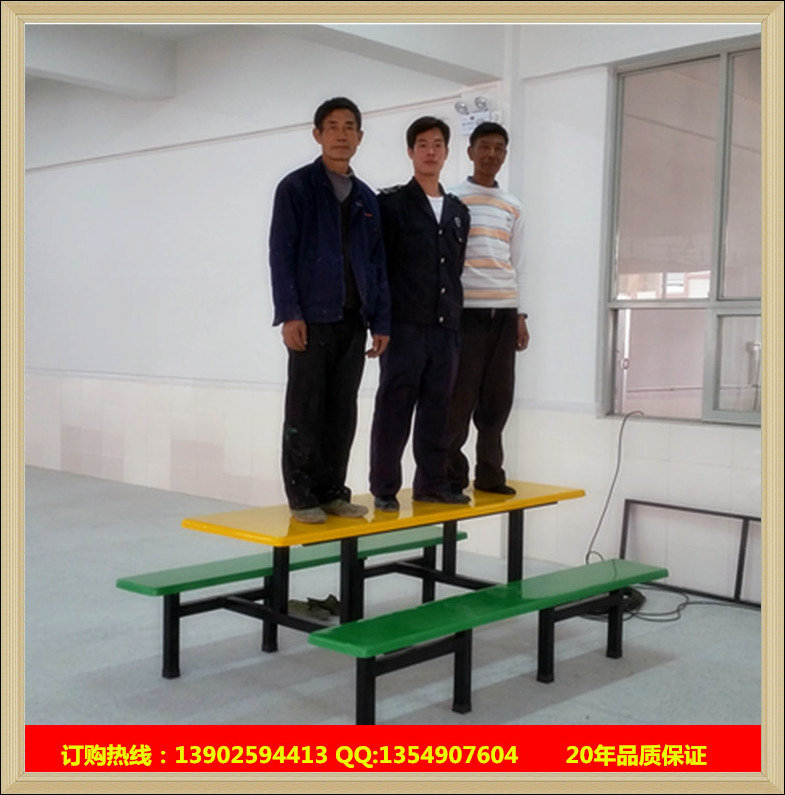 本产品为手糊玻璃钢制品,有着手糊工艺无可避免的差异性,不可能如精细家私般完全均一;请贵客慎重选择;我们的玻璃钢餐桌椅主要款式有: 四人条凳,六人条凳,八人条凳,十人条凳 四人圆凳,六人圆凳,八人圆凳,十人圆凳 四人靠背,六人靠背,八人靠背,十人靠背 方桌,,圆桌,或由客户定做。 欢迎新老客户光临! 凳面一般用螺丝螺帽连接 凳面正面 支架结构为爪字形或八字形 支架结构, 带47*47MM防滑胶垫 桌面 正反及桌面支架,桌面一般用木牙螺丝连接 〓产品描述〓 可根据自己的喜好选择不同款式及不同颜色的玻璃钢餐桌椅。台面和凳椅面可以选择不同的颜色。 款式类型:桌椅连体、桌椅分体、条凳分段,每种款式可根据您的需求做成两坦背洲食堂加厚型烤漆餐桌椅,佛山(中山)食堂餐桌椅厂家安装加工艺造价人、四人、六人、八人、十人座的。 餐桌椅主要有以下类型:二人玻璃钢餐桌椅、四人食堂餐桌椅、六人快餐桌椅、八人餐桌椅、十人餐台椅;玻璃钢靠背椅、玻璃钢条凳餐桌椅、玻璃钢圆凳餐台椅;连体餐桌椅、分体餐台椅、分段条凳餐桌椅;圆桌餐台椅、方桌椅餐桌椅;玻璃钢餐桌椅、曲木椅餐桌椅、防火板餐桌椅。玻璃钢餐桌椅台面及椅、凳面为玻璃钢材质,颜色可选择。铁架一般为47*47*1.0厘厚方管制造,喷漆色漆。方便灵活的食堂餐桌椅.