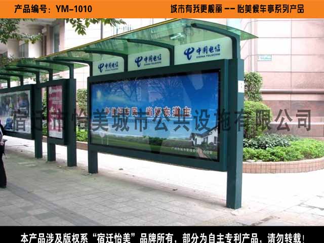 候车亭使用材料:立柱多采用304不锈钢板材压制或直径为114mm、141mm、133mm的不锈钢管、镀锌钢管,还有的是矩形管立柱,常见的有100mm*100mm、120mm*120mm、100mm*150mm。采用不锈钢材料制作的候车亭较易清理,而采用镀锌钢管制作的候车亭色彩则较为美观、多样。顶棚一般采用304不锈钢板或镀锌板制作(厚度1.2mm或者1.5mm),也有用铝塑板、阳光板、耐力板的(厚度为4.2-4.5mm)。