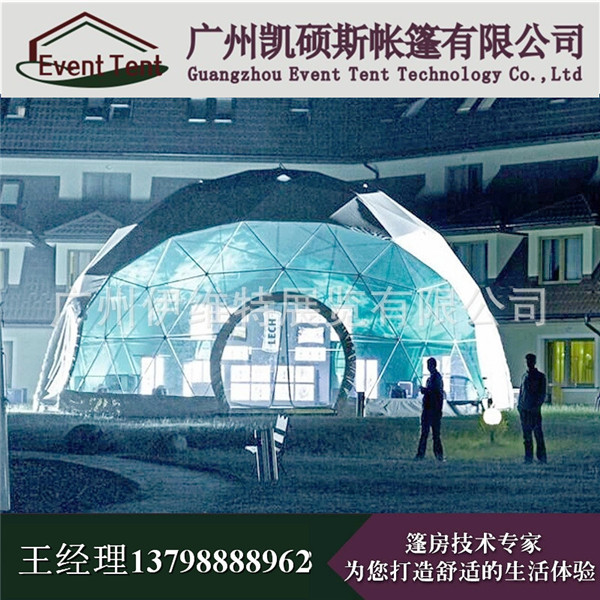 深圳透明圆顶球形篷房帐篷有着三最之称“空间最动感,安装最轻便,设计效果最完美。”达到国际建筑工程标准的稳健架构,可以临时悬挂灯光和音响设备来装饰和填补您的活动空间。