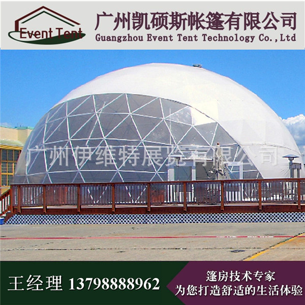 深圳透明圆顶球形篷房帐篷可动感玲珑,造型气势,通透明朗,亦可绚丽多彩,圆形顶的先进设计,接近完美的形状大小,自由的使用空间,电缆可以从容的铺设在地板下,使得整个空间既别致又方便而安全,其万变的外观,不变的品质,其先进的结构设计使得搭建更为快捷,同时更有效的提高搭建安全,即便是名为帐篷但可成为一个半永久性建筑。
