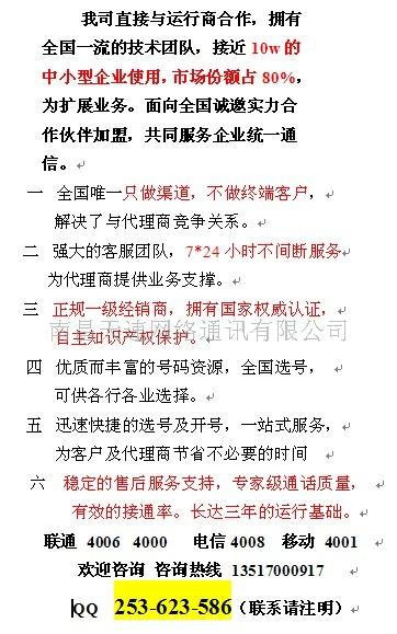 南宁400电话总代理/南宁4000电话总代理/南宁4006电话总代理/商务电话13517000917