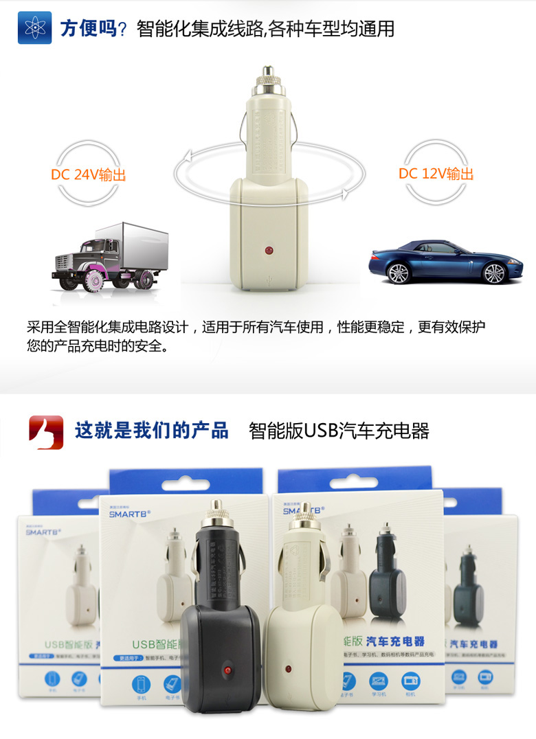 输出电流按数码产品所需电流智能调整,更适合智能手机,MP3,PSP及其它数码产品的充电需求