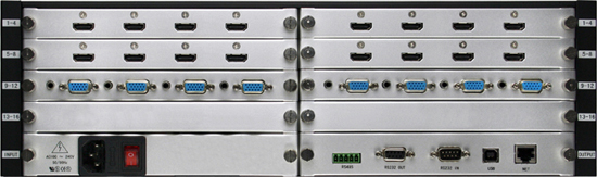 ·多槽位设计,支持128路输入,128路输出高标清视频信号切换;