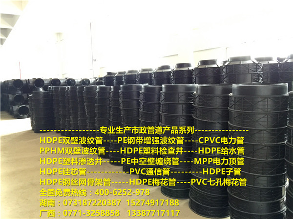 公司主要生产市政工程管道 民用管道 塑料检查井,是中南地区生产管道品种最多最齐全的生产厂家之一。
