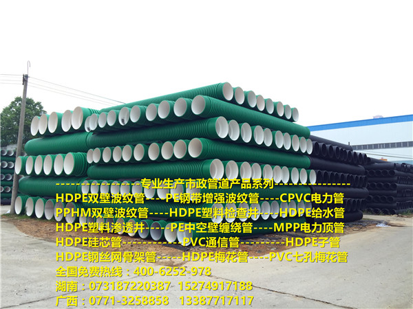 产品系列关键字:HDPE双壁波纹管,HDPE钢带增强螺旋波纹管,HDPE中空壁缠绕管,HDPE给水管,PVC通信管,多孔梅花管,CPVC高压电力套管,塑钢缠绕管排水管,HDPE子管